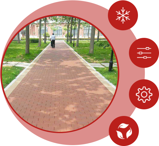 有優(yōu)異的吸水性能,并且表面并沒有想象中的光滑,下雨后雨水進(jìn)入磚體,粗糙的表面可以給行人和車有較好的摩擦力,使其在雨后有出色的防滑效果。
